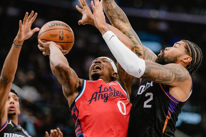 更糟糕的是,还是原本就没好利索的右腿筋。据ESPN报道,杰伦·格林自赛季开始前就一直受到了右腿筋伤势困扰,最初是在训练营期间受伤,然后在季前赛期间加重,因此他缺席了新赛季的前8场比赛。可现如今,再次复发。而且,腿筋伤势我们都清楚,并不算很严重,但很麻烦,需要长时间的休养。只是复出第二场,又要长时间缺席了。而谈到复出,太阳今天的对手快船队更有话说,布拉德利·比尔,又复出了。这一次再战旧主,他能横扫上一场的阴霾吗?并没有,甚至比赛刚开始的时候,比尔接球上空篮,一脚地板油没放进,更丢人了。全场12分,在菲尼克斯丢的脸,在洛杉矶又丢了一遍。